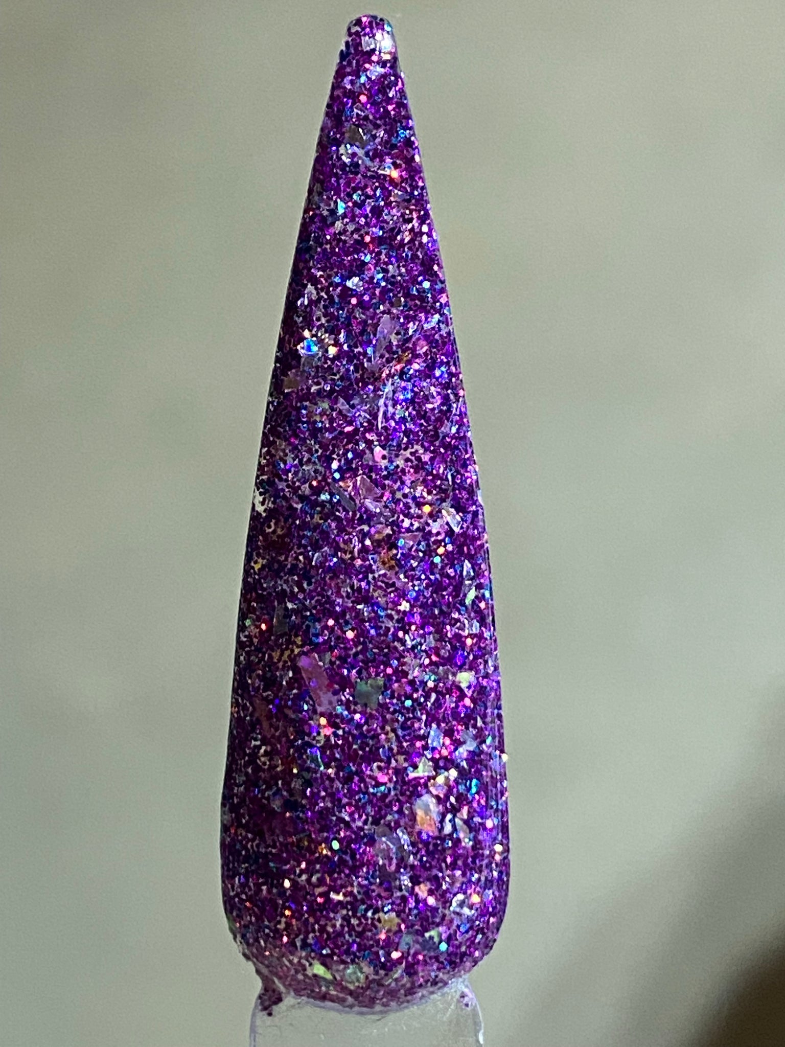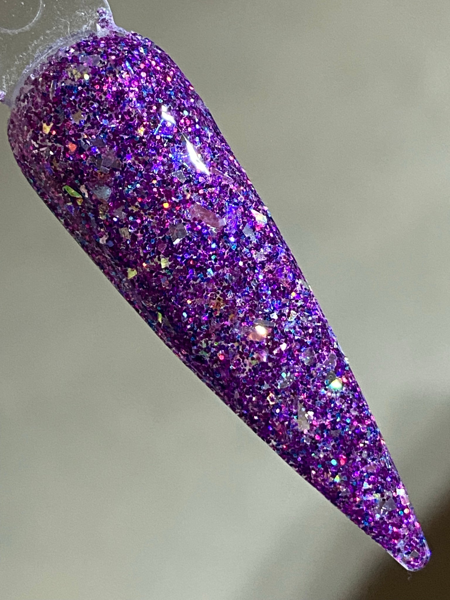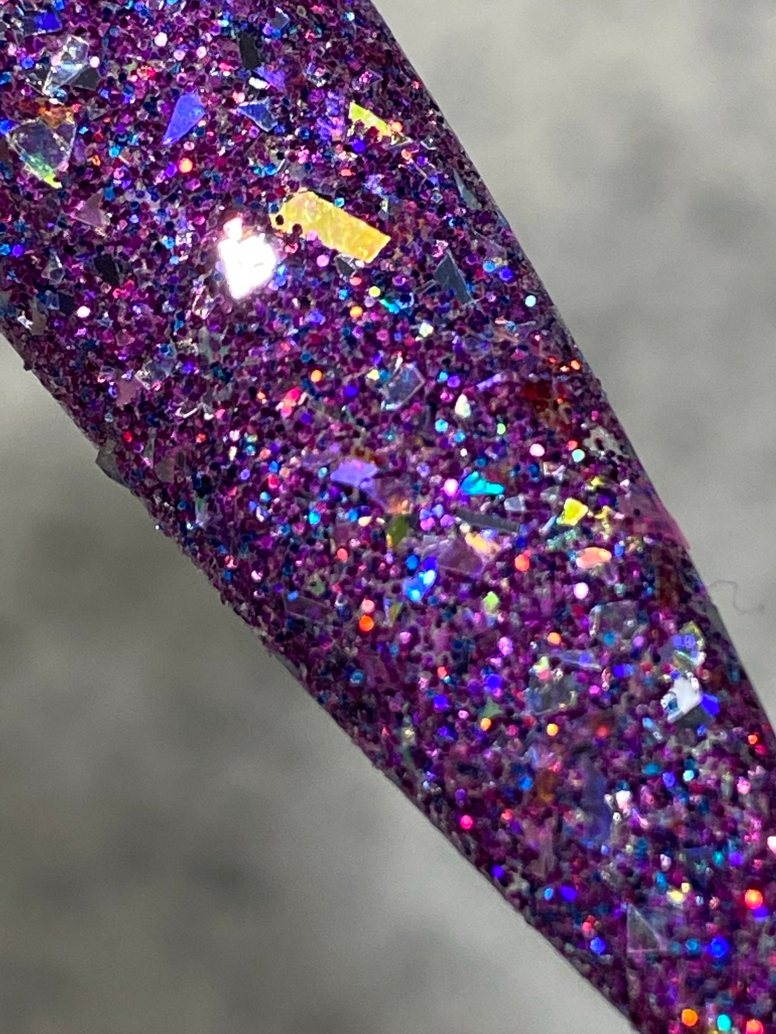 It's My Party is a mixture of different shades of holographic and metallic fine glitter, shards and flakes. This one is a fun purple mix loaded with different accent colors.