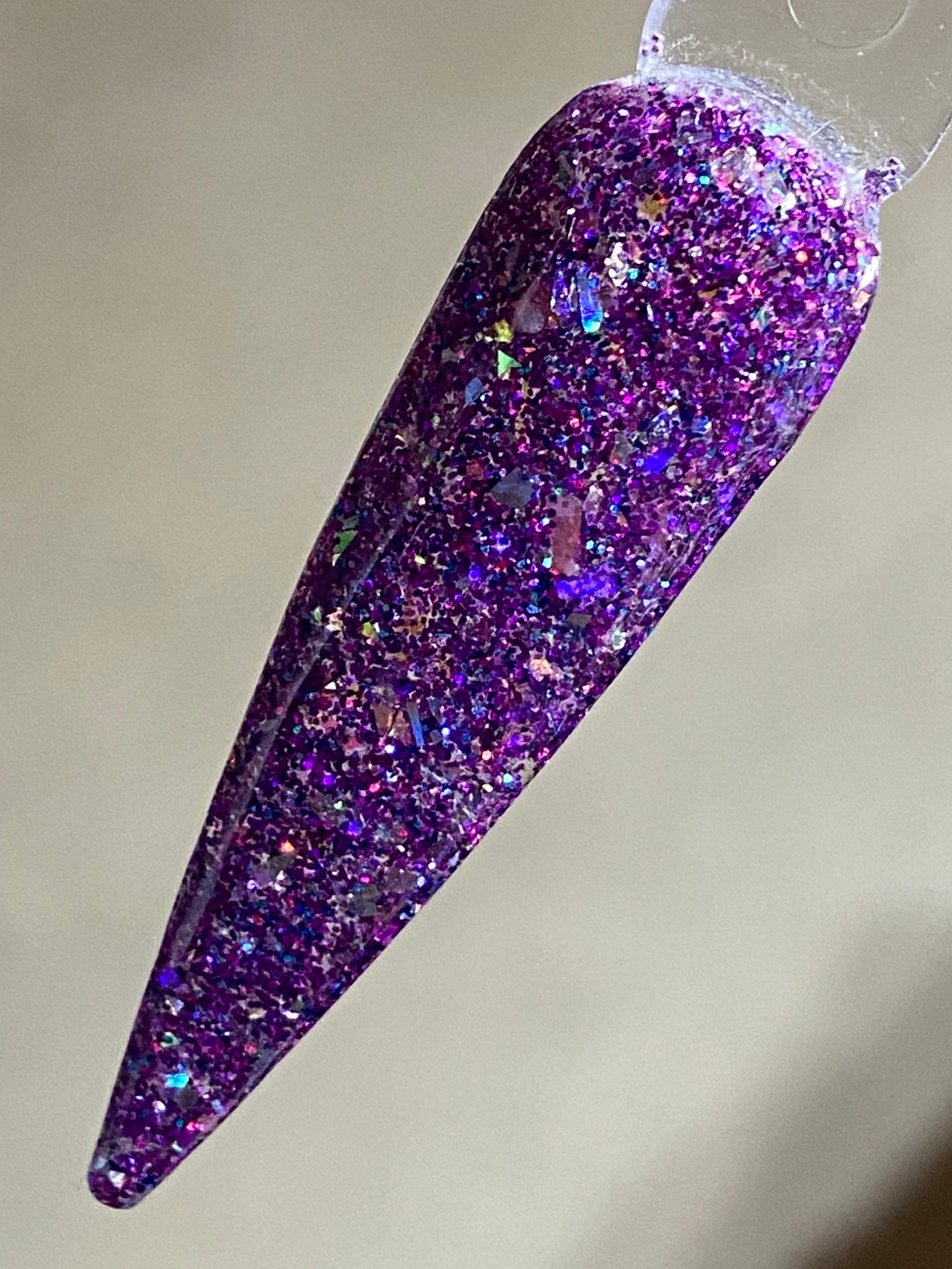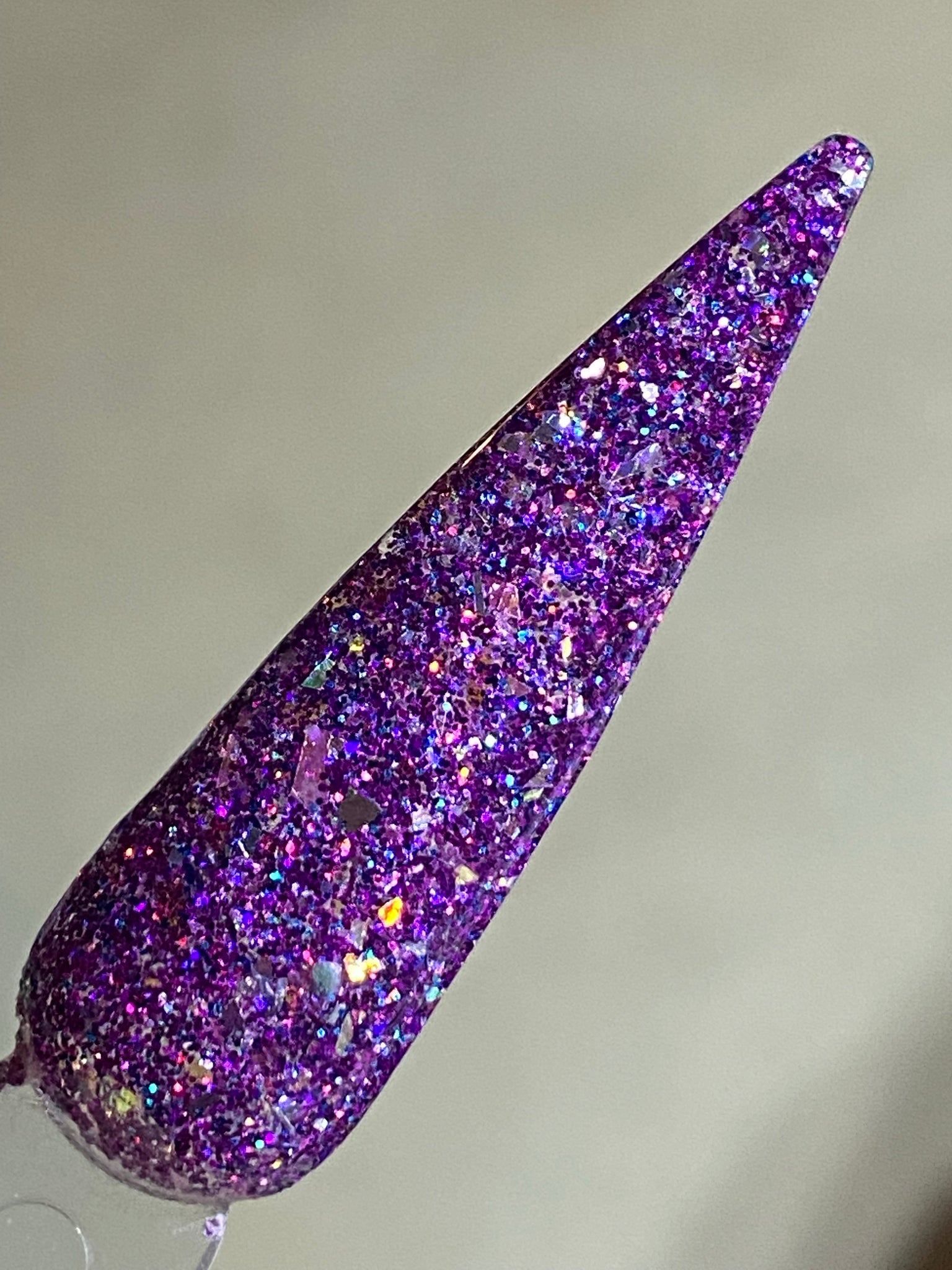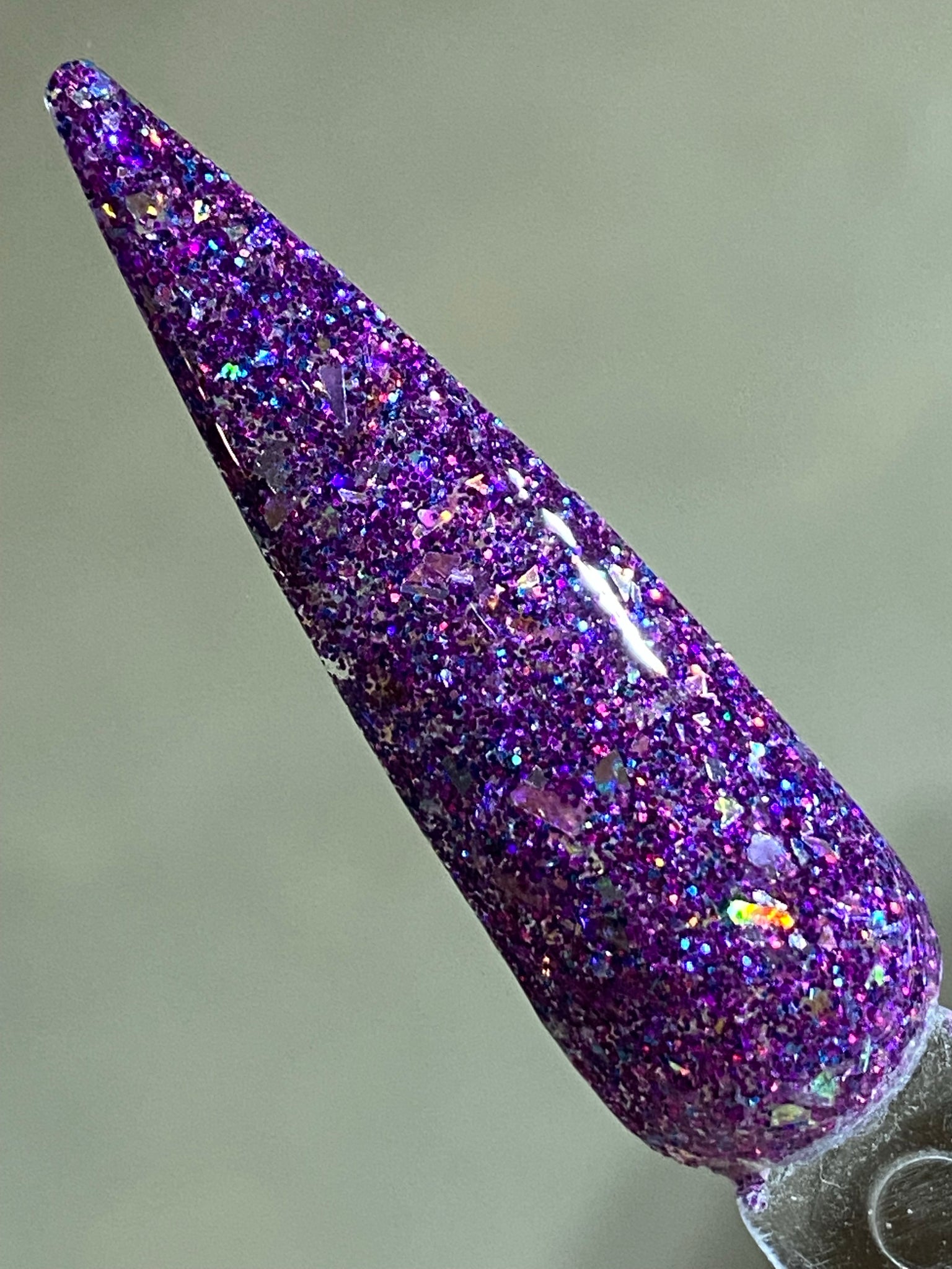 It's My Party is a mixture of different shades of holographic and metallic fine glitter, shards and flakes. This one is a fun purple mix loaded with different accent colors.